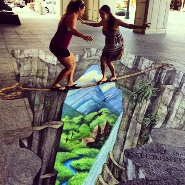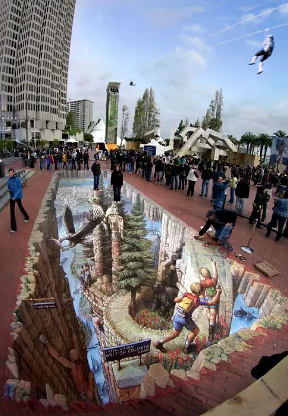 不要那么害怕,这些都是画在地面上的3D涂鸦,只不过,画的太过逼真,如果不小心走上去,还真会吓那么一跳。不信,你来看看。。