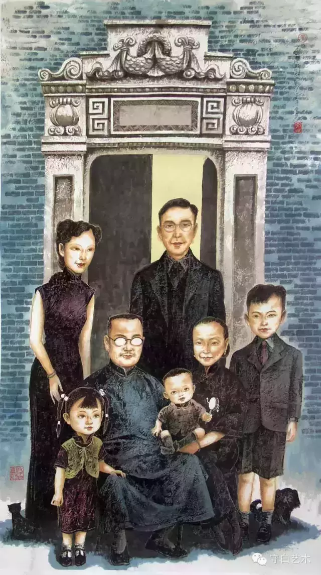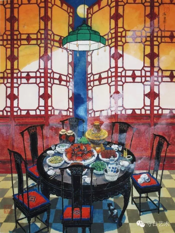 重彩画《阖家团圆》70x70cm 2013年 李守白