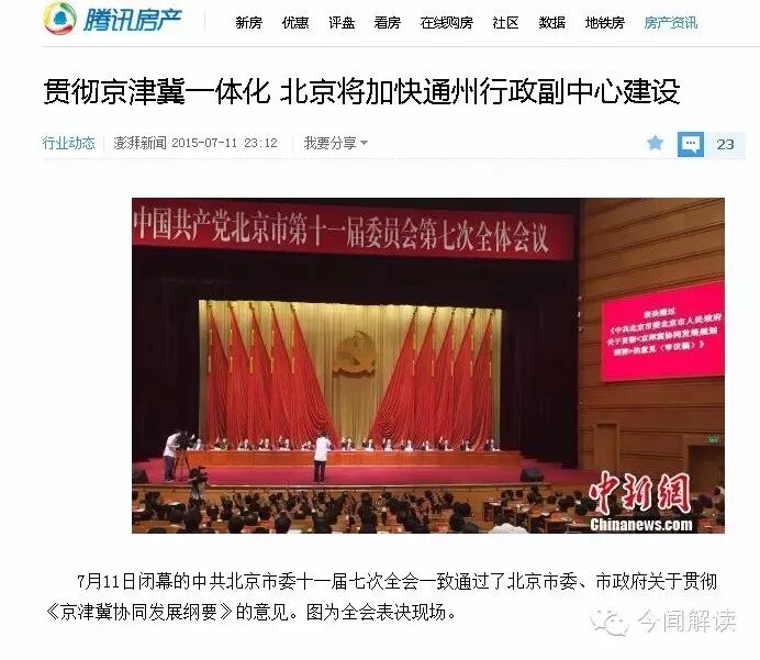 2015年7月11日起,媒体已经证实,北京市委、市政府、市人大、市政协4套机构将于今年10月1日起,从市中心迁往北京市东部郊区通州办公。一石激起浪千层。政客、专家、学者、商贾、百姓纷纷发话,对北京迁府一事多角度解读。历史学家、建筑学家、城市学研究者也追忆起,1949年建政时关于北京规划的争论。大家特别注意到最终建言失败的著名建筑专家梁思成先生痛心疾首的预言:“在这些问题上,我是先进的,你是落后的”,“50年后,历史将证明你是错误的,我是对的”。这是梁先生50年代初对北京市长彭真说的话。