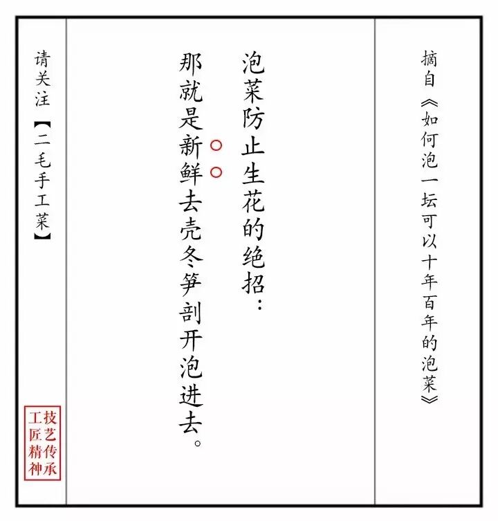 如何挑选和浸制泡菜坛子,将在书中的长文里介绍。坛子他有,现在需要的首先是两个石头。泡泡菜,要石头干什么。我们吃泡菜,我们不吃石头。但是,要想有一坛好泡菜,石头是不能少的。要河里的鹅卵石,青色,质地紧密的最好。还必须是即使夏天、水温也非常凉冷的河里卵石。像成都都江堰岷江上游里的。这里的江水,是万年雪山的冰雪融化汇聚,水中的石头,在清澈冰凉中浸泡了千百年,石骨寒透。即使大热天,只要在荫凉之处,这样的石头摸起来,依然冰磬。性喜寒凉的泡菜,有这样的石头养着,才会久泡而不软,硬脆爽口。而且,石头在坛底,有吸附之用,盐水就清亮。两个石头,一个镇底,一个压在泡菜之上,菜静而泡,方能长久。不过,江河上船家的泡菜,却不需要镇压,倒是船随波动,坛子中的盐水成了活水,泡出的菜,有另一种风味。