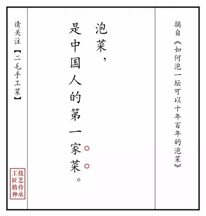 关于泡菜,我断断续续地在写一篇长文,叫《人民为什么要泡菜》,准备收进新书里。前不久,一个朋友说,他家的一坛老泡菜,全坏了。他母亲泡了几十年,很是珍惜。夏天,母亲去了姐姐家,他自己却忘了换坛沿水。母亲回来,看着一坛坏水,虽没说什么。他知道,母亲很失落,很无奈。所以,他想重新起一坛盐水,算是给母亲的道歉和一点安慰。他要我提前把怎么起新盐水写出来,好参考着做。泡菜,是中国人的第一家菜。老坛子里,有家里很多怀想和记忆。母亲的伤感,儿子的歉疚,比我一篇文章的好坏,重要多了。我就把自己所知道,所经验的方法,写出来。冬天到了,冬天正是起泡菜盐水的最好时节。泡菜喜欢凉冷,但是,一坛泡菜,给家的感觉,却是温暖的。