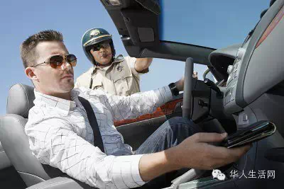 在美国开车要非常小心,我们常常可以看见高速或一般道路上有很多巡逻的警车,一般来讲,警察如果看到您犯规会先亮起警灯跟在您后面。如果您没注意,警察才会拉响警笛,再一次警告您有警察跟着您,有时警察还会用扩音器对前面的车辆喊话,叫您靠边停车或是给您一些指示。一旦发现有亮警灯的警车尾随要千万注意,很有可能是在跟您,要尽快按照警察的指示行动。