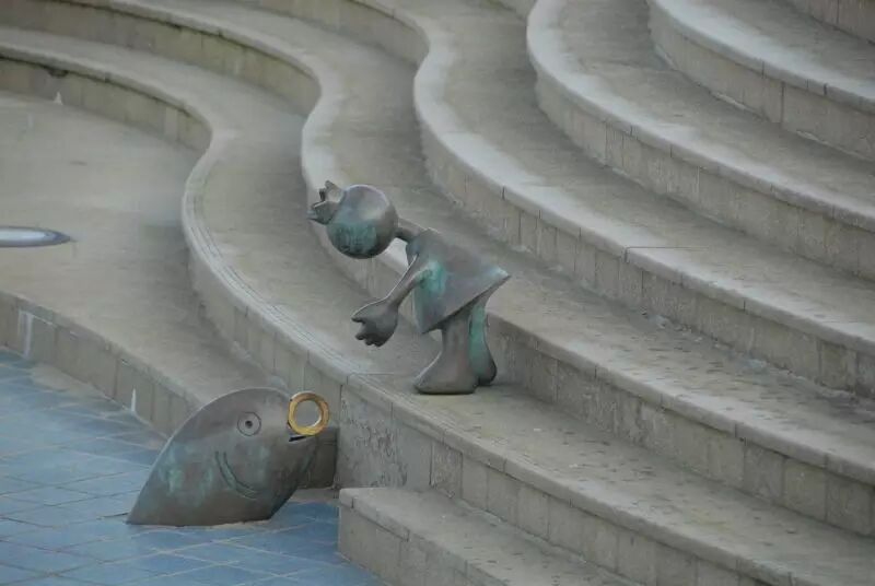 上面有一张图很有趣,这张图是我在海牙一个海滨拍的,海滨有很多雕塑,其中一个就是这样。这个动作荷兰人一看很亲切,他手里拎着是一条小鱼,他们称为“ haring”(鲱鱼),这是当地最著名的小吃。2008年的时候,我去那里住了三个月,每次上街都会买两条吃吃,因为我脊椎不好,仰不起头来,我这样比划一比划,卖鱼的小伙子就知道是两条,还要切开。