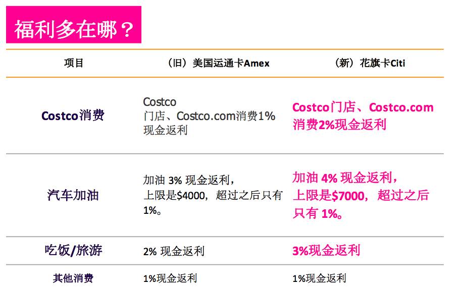 加油 4% 返现(包括Costco的加油站)、吃饭和旅游 3% 、Costco和Costco.com 2% ,其他类别 1%。