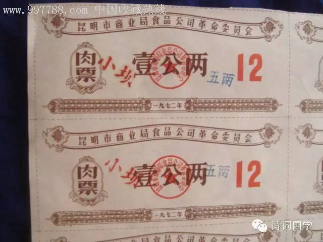 毛时代票证繁多,各地的商品票证通常分为“吃、穿、用”三大类。吃的除了各种粮油票外,还有猪、牛、羊肉票、鸡鸭鱼肉票、鸡鸭蛋票,各种糖类票,各种豆制品票及各种蔬菜票等等。穿的除了各种布票外,有化纤票、棉花票、汗衫票、背心票、布鞋票、棉胎票等等。用的有手帕、肥皂、手纸、洗衣粉、火柴、抹布票(这个比较奇葩,可惜没找到图片)、煤油票,各种煤票、商品购买证、电器票、自行车票、手表票,还有临时票、机动票等,五花八门,涉及各个领域的方方面面。下面是一些奇葩票证,各位慢慢看来。