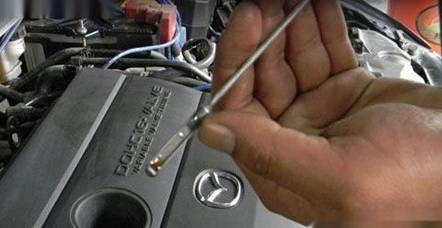 光照法取出机油尺,高举45度,在阳光照射下观察机油油滴,若是无磨屑或者少磨屑,说明机油良好,若是磨屑很多,说明机油该更换了。