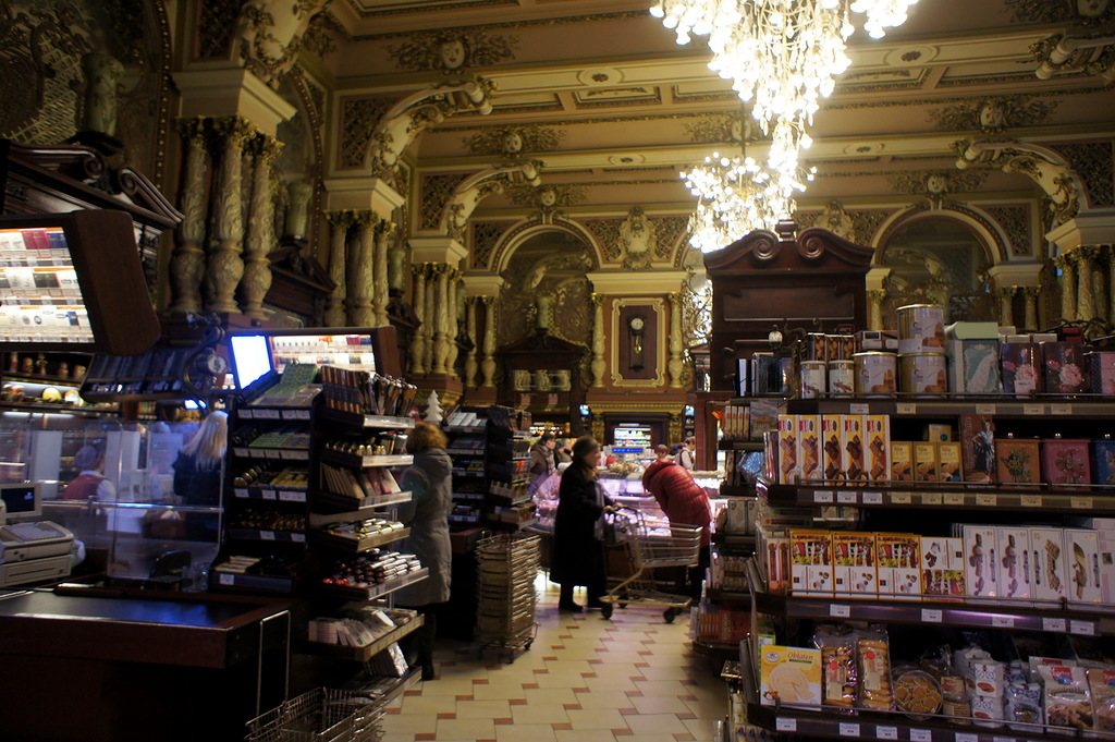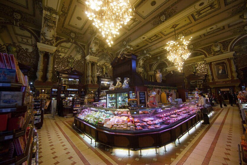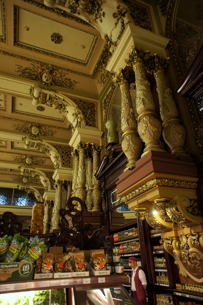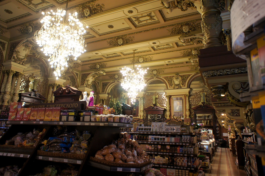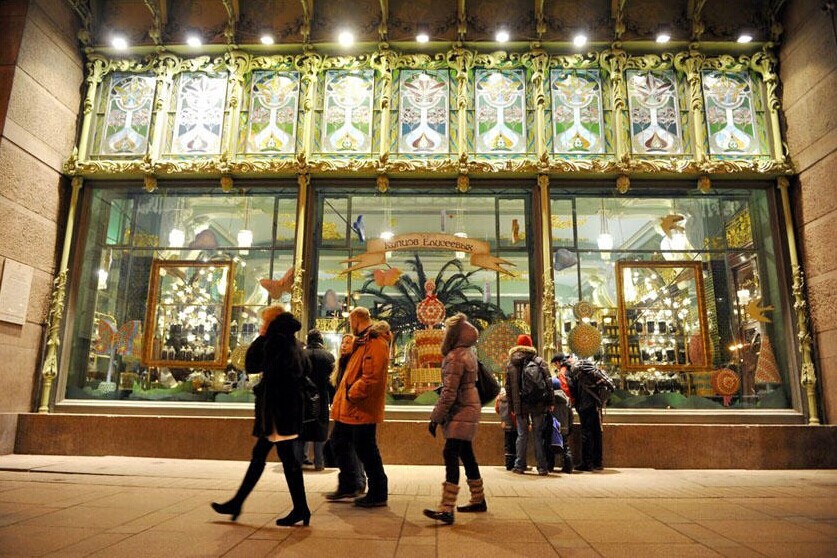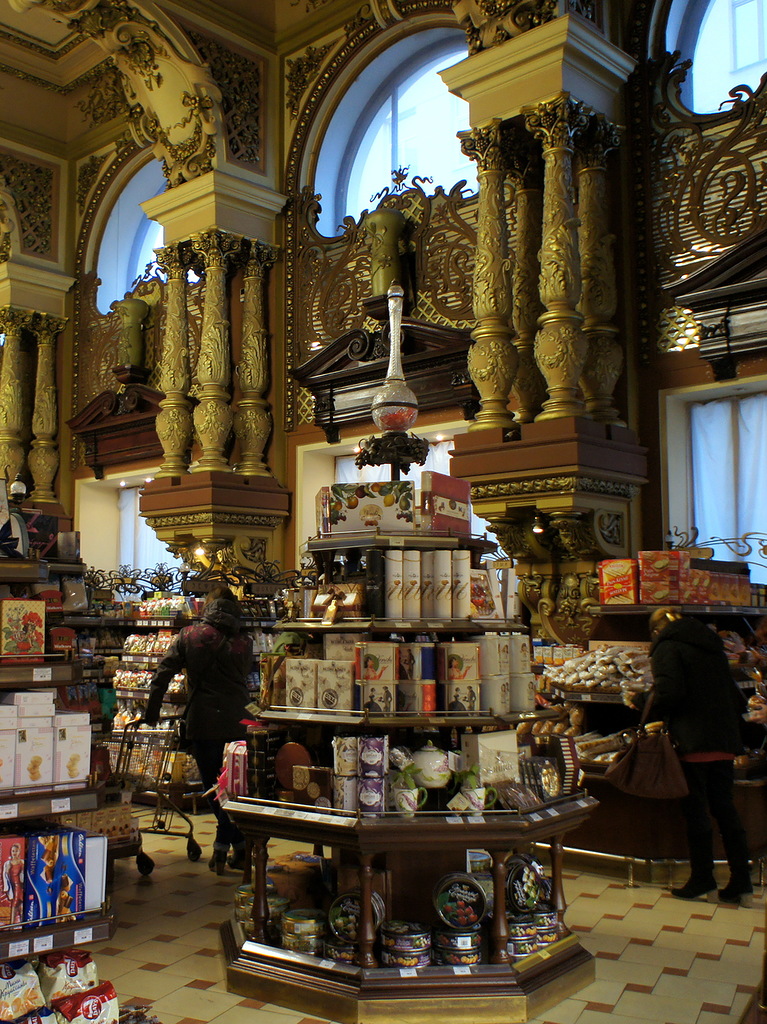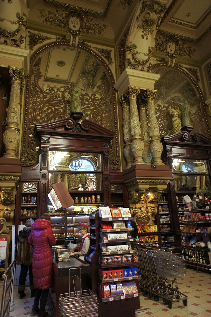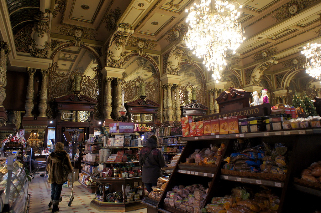 俄罗斯的宫廷超市绝对是集古典奢华为一体的建筑瑰宝,由于像这样走古典宫廷风格的超市实在少见,它也成为许多观光客拍照驻足的地方。这样的宫廷超市彼得堡和莫斯科各有一家。圣彼得堡的耶利谢耶夫斯基超市,这家超级豪华的古典宫廷超市早在20世纪初叶就开始营业。金碧辉煌的装潢搭配上古典气息的格局,使得这家超市在俄罗斯享有盛名。莫斯科还有一家耶利谢耶夫斯基超市的姊妹店,也已经有超过百年的历史,而且名气一点也不逊于圣彼得堡店。