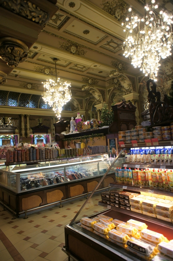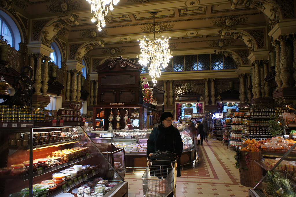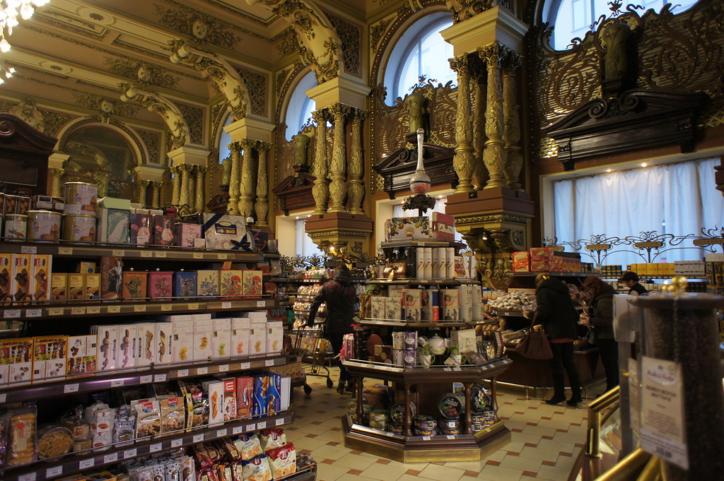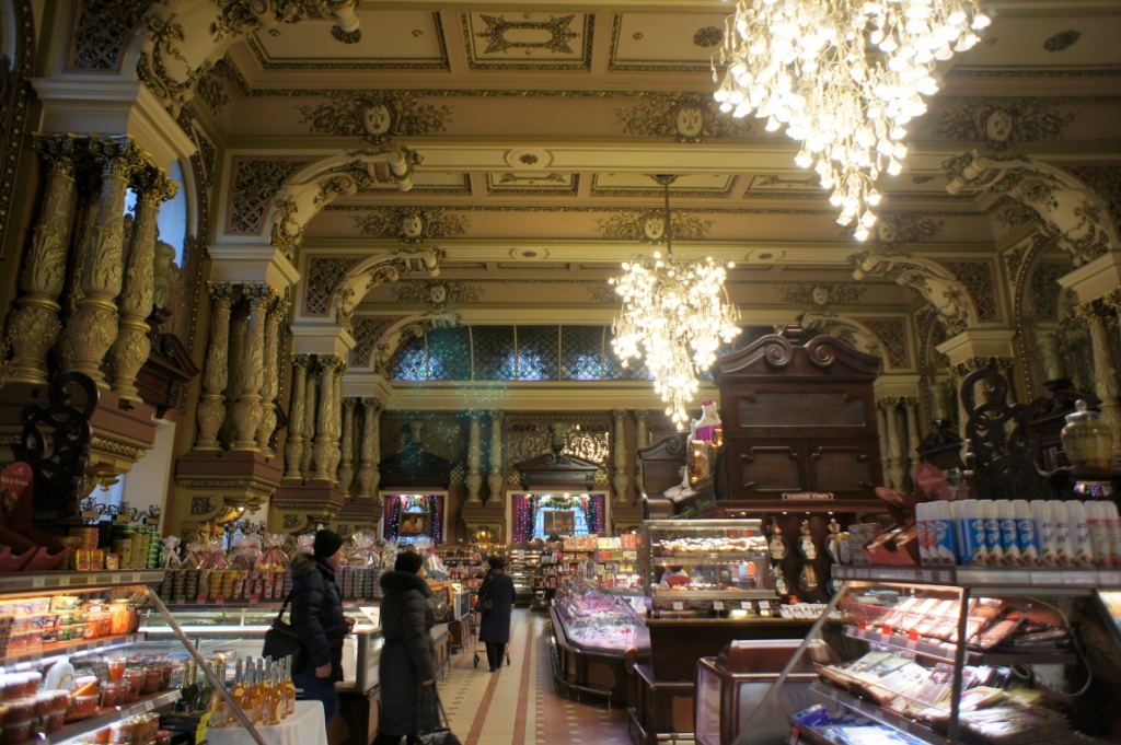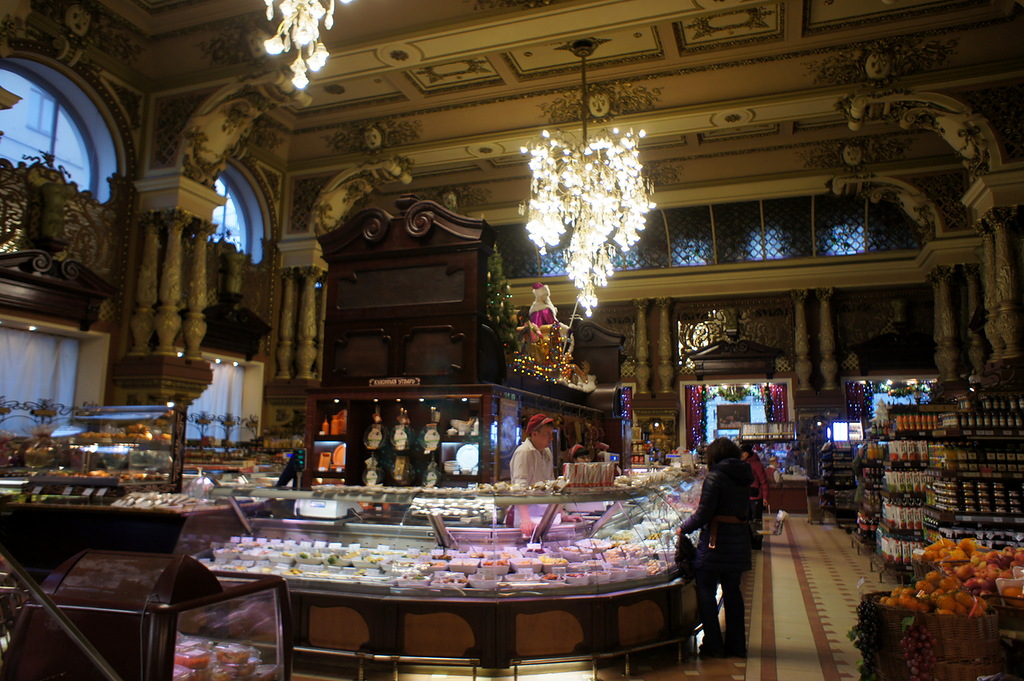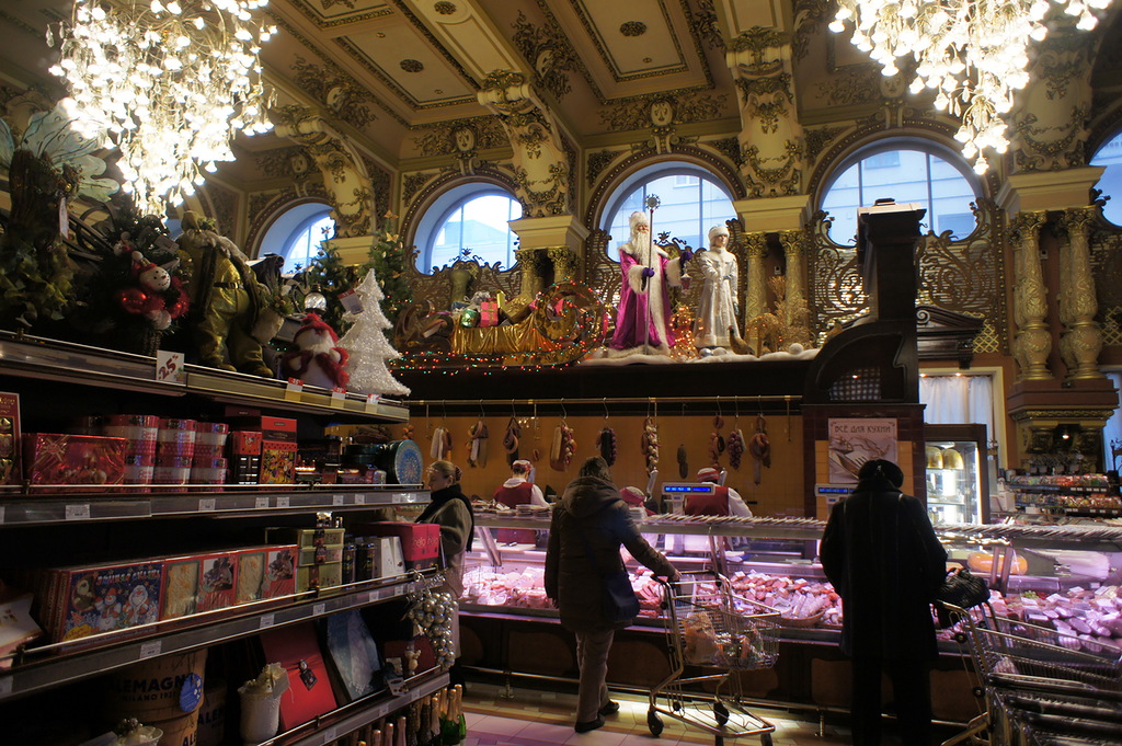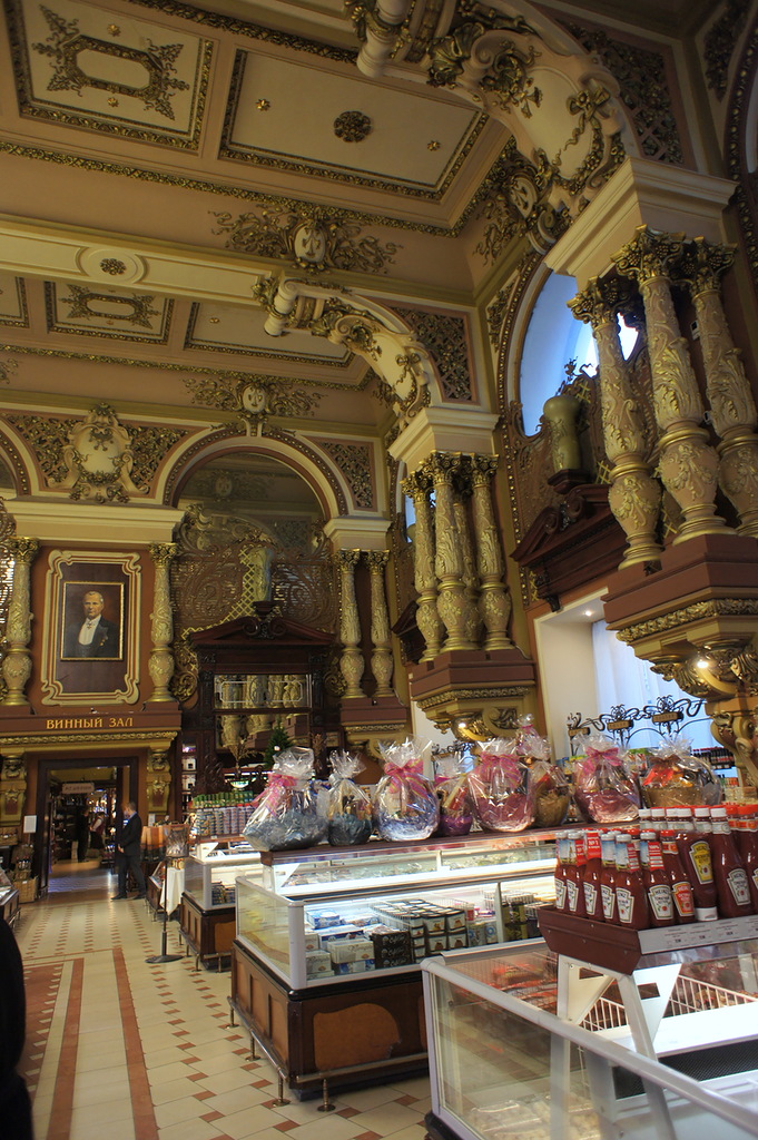 俄罗斯的宫廷超市绝对是集古典奢华为一体的建筑瑰宝,由于像这样走古典宫廷风格的超市实在少见,它也成为许多观光客拍照驻足的地方。这样的宫廷超市彼得堡和莫斯科各有一家。圣彼得堡的耶利谢耶夫斯基超市,这家超级豪华的古典宫廷超市早在20世纪初叶就开始营业。金碧辉煌的装潢搭配上古典气息的格局,使得这家超市在俄罗斯享有盛名。莫斯科还有一家耶利谢耶夫斯基超市的姊妹店,也已经有超过百年的历史,而且名气一点也不逊于圣彼得堡店。