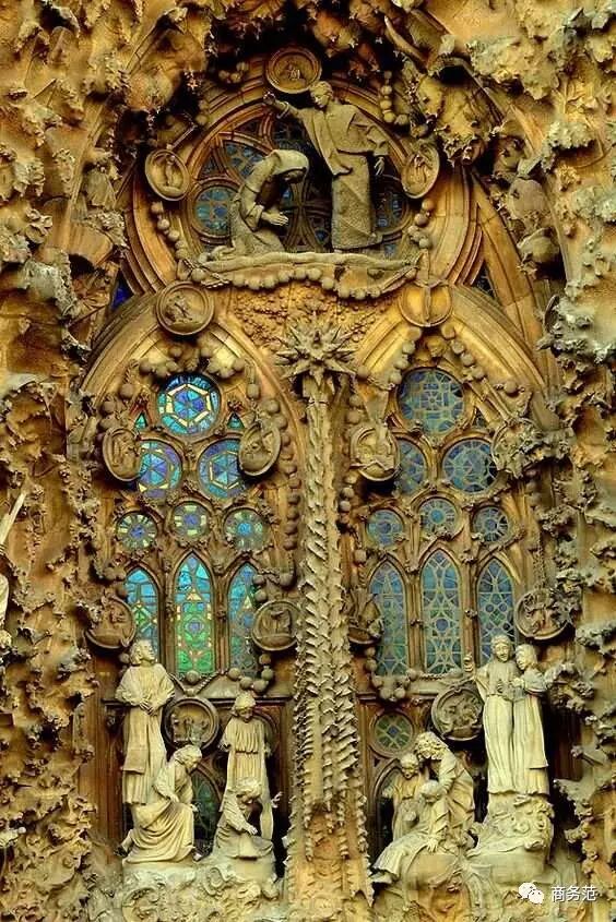 这是从外面看窗子的样子,注意雕塑和材质感。 我们走近些,看看这些细致的雕像。