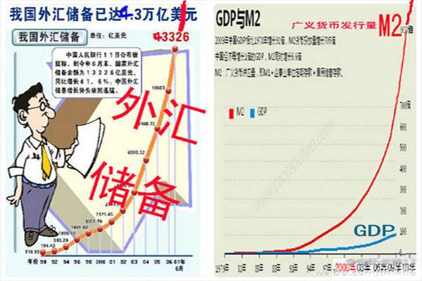 (图6:中国外汇储备与货币供应量M2的“正相关”关系)