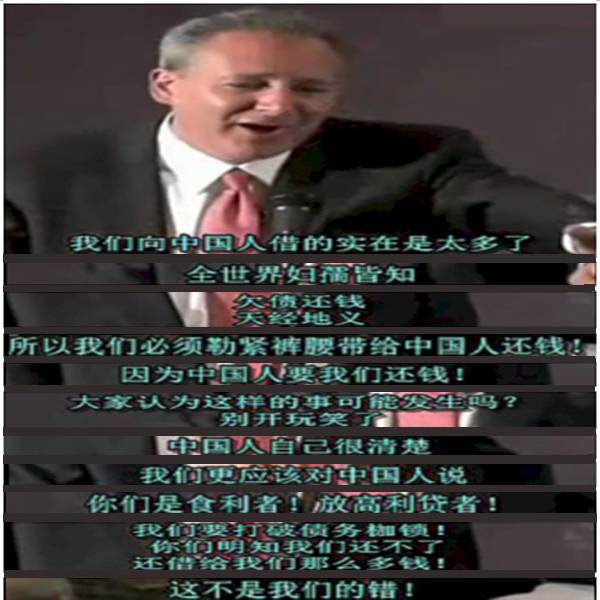 网上有个视频,就是美国人讽刺挖苦中国官媒和芮成钢们说“美国欠中国很多钱”的,有兴趣的读者可打开链接欣赏一下,呵呵。图7是视频部分截图。视频网址