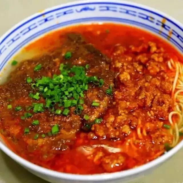 一碗辣肉面就闷头开吃,吃完一抹嘴,爽!