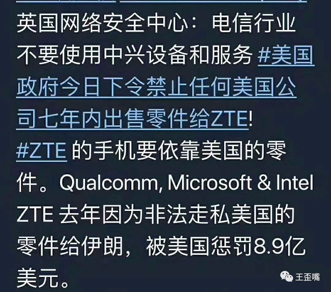 由此可见,美国对中兴的制裁已经持续了四年之久,有人把中兴制裁决定跟四月份开始的贸易战联系起来,实在有些牵强附会,或者说居心不良的为了煽动那些满脑子爱国主义的暴徒民粹们喊两嗓子“打倒美的”。