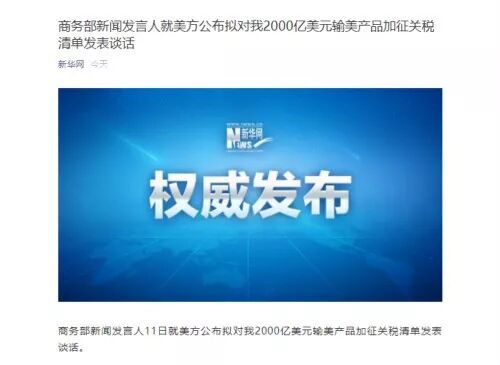 不出所料,说到做到的特朗普再次兑现了自己的诺言:继7月6日美国宣布对来自中国的340亿美元的产品加征25%的关税后,美国7月10日再次宣布,将对2000亿美元中国输美产品加征10%的关税。