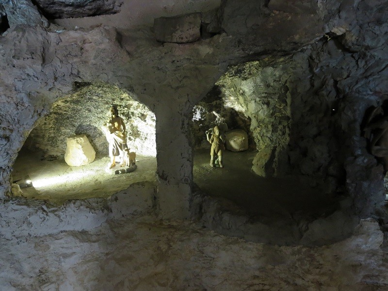 整个园区不大,除了辟成纪念教堂的洞穴,还散布着正在挖掘的村庄遗址,同时散布着不少露天半露天的敬拜点。