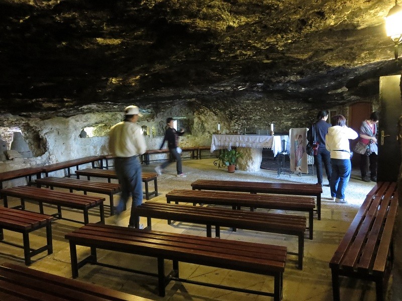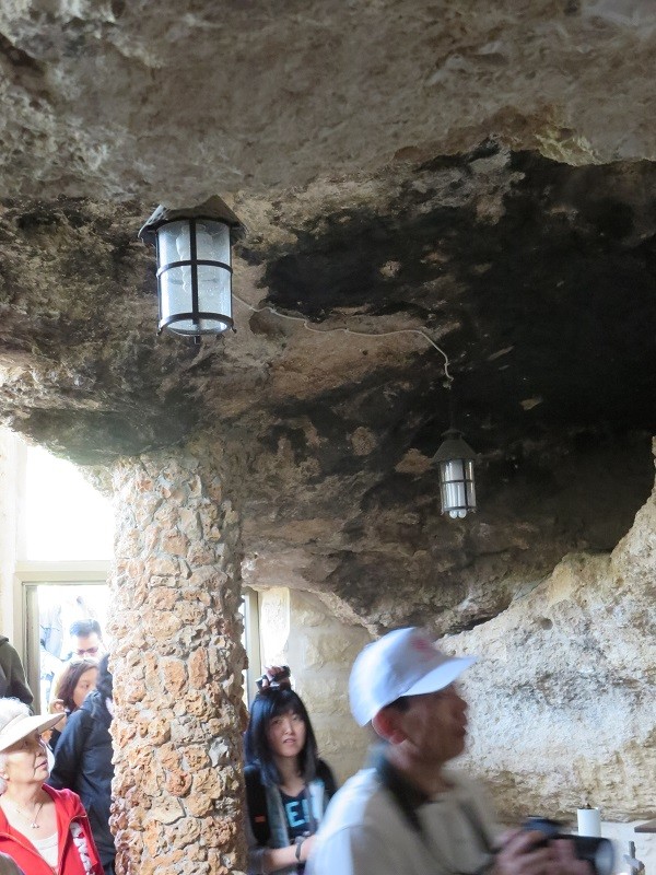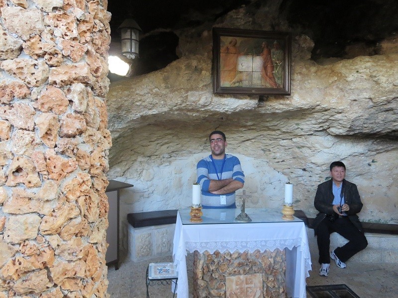 洞穴,同时成了教堂。这边一间小一点,阿拉伯籍的导游,照样大讲圣经,俨然牧师。