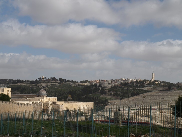 这是其中的一个方向,你看,圣殿山,橄榄山就在那里,它们的位置关系一目了然。