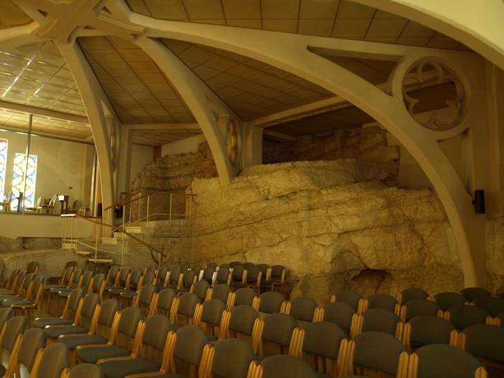 这也是以色列教堂的一大特色,很多重建的教堂,都将原来的废墟包括在新建筑之内。