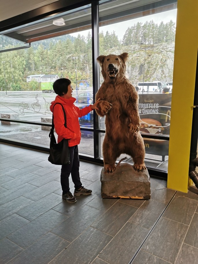 这是来回过来两次的超市,里面有个标本熊,道个别。