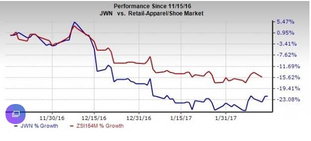 零售店无关痛痒,Ivanka品牌销额售占Nordstrom零售的1/10以下,况且ivanka品牌定位特色化都不够鲜明。这些足以使零售店作出下架的决心,这从Nordstrom半死不活的股价就能看得出来。 (见“Nordstrom和服饰零售板块对比图”)