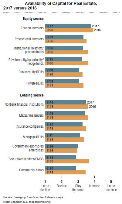 2017年美国的地产投资吸引力还是很大。但根据投资调查显示,2017年从海外投资人到本地投资人(机构/个人),从银行到非银行的金融借贷机构的投资资金相比2016年均有所下降(图5)。贷款审批预测印证了这个变化。持谨慎审批标准态度的放贷机构从2016年的129.%增加到了今年的47.4%(图6)。让投资者注意到了逐渐走高的价格并转趋保守谨慎。本次的复苏和危机前完全不同,目前地产市场贷款的审批标准要求较严格,和上次那种不可持续的飙涨截然不同。数据显示,申请的融资贷款要求严格和极低的库存量让供给与需求失衡。目前看,至少在热点地区短期不会改善。