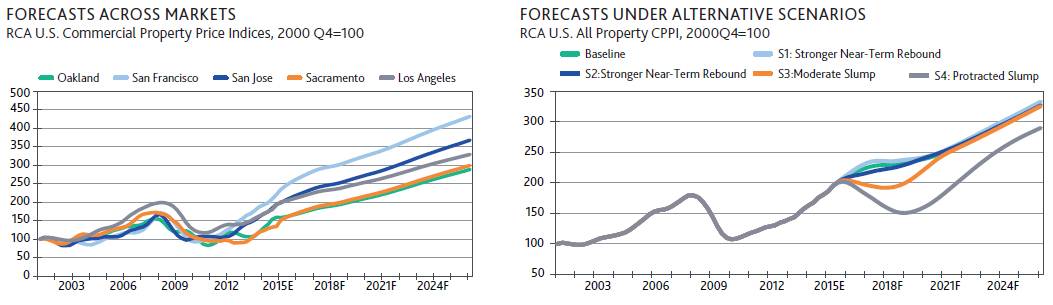西海岸在投资需求方面保持强劲,从最北面的西雅图,波特兰,旧金山,洛杉矶一路到橙县,圣地亚哥全部抢手。中部有差一点的奥斯丁和达拉斯,而东岸纽约(曼哈顿)还是首位。目前看地产涨势还在继续,在没有任何黑天鹅,灰犀牛,蝴蝶效应等时髦动物出现下,穆迪(Moody)给出了乐观的后期预测(见图8)。