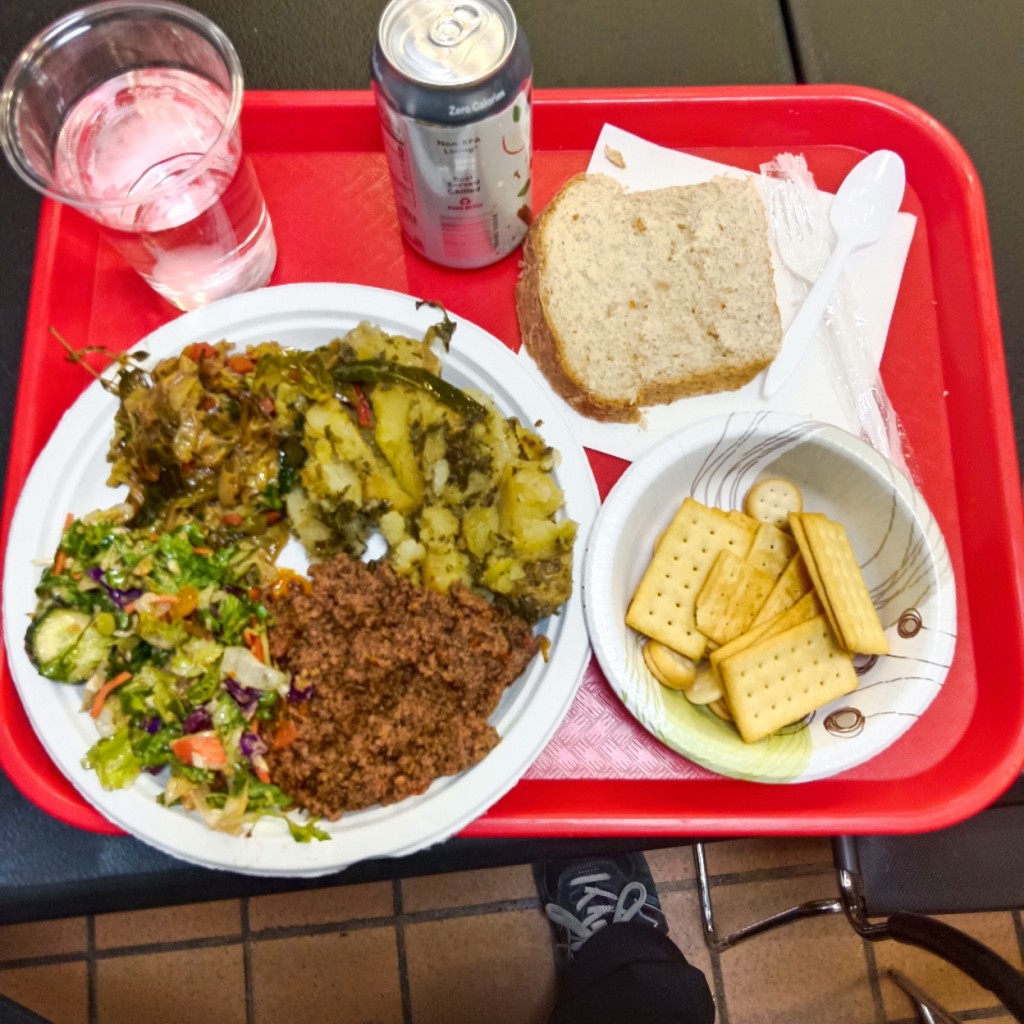 这个牛肉馅,盐被多放了两三倍。把牛肉馅和少许胡萝卜丁煮熟,这是很好的烹饪牛肉的方法,因为块状签状的牛肉难烹饪,而绞成肉末,烹饪就简单了,不美观,但一般不难吃。
