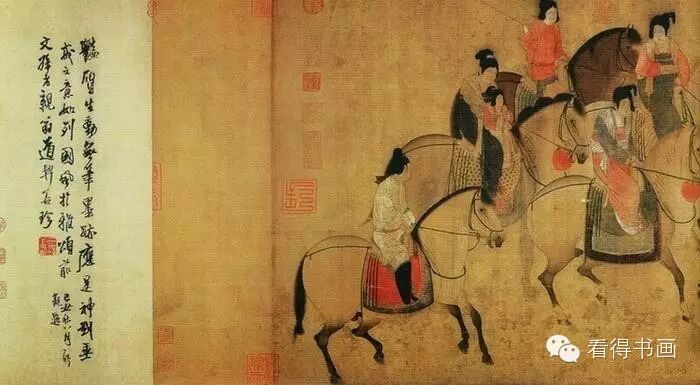 张萱、周昉是唐代最具盛名的仕女画大家, 驰誉丹青。张萱在盛唐时画贵族人物最负时誉,不仅能够表现上层社会妇女的姿容情态,而且善于巧妙地刻画出“金井梧桐叶落黄”这种宫女被冷落的凄凉情调。周昉出身显贵,多画宫廷妇女,其风格为优游闲逸,容貌丰肥,衣榴劲简,色彩柔丽,独树一帜。