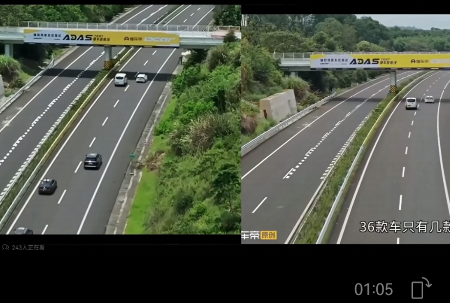 左半部分是华为的前车切出的航拍图,右半部分是特斯拉的前车切出的航拍图