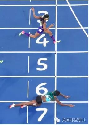 不过不管怎么样,根据田径比赛规则,哪个选手躯干先撞线就算哪个赢...