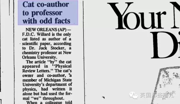 Hetherington先给它起了一个学术化名:F.D.C. Willard(Felix Domesticus, Chester意思是:家猫Chester,Willard是它爸的名字),并且将Chester描述成他的大学同事。