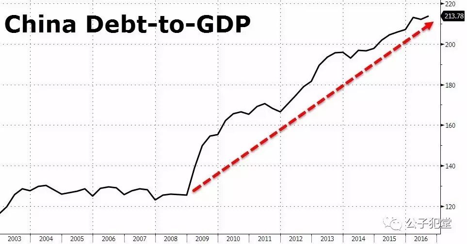 据IMF保守估计,中国的非金融部门债务在五年后将超过GDP的290%,其中仅在2016年国企债务就已经高达94万亿人民币以上,每年增速远超过GDP增速。