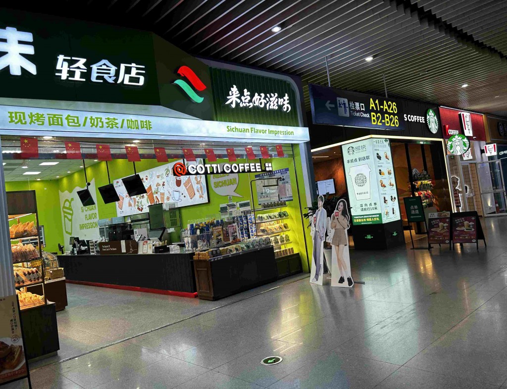 在经济下滑压力下,民众收入减少,许多餐饮业倒闭了。四川的物价大慨仅是深圳的二分之一,或三分之一。美国的品牌连锁店,如星巴克,麦当劳及肯特鸡等在价格竞争中,已处于不利的位置。但在闹市街头,车站和机场等地,顾客仍然多过本地的餐饮业。