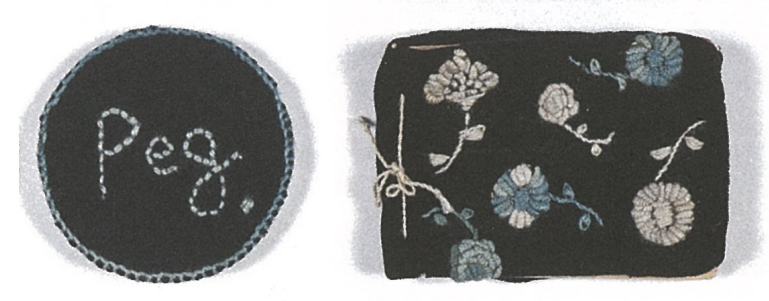 华西蒙化名“佩吉”时使用的徽章与秀有花纹的本子。(图片来源:源自Jean-Pierre Hoa藏品,Jean-Dominique Burton摄)