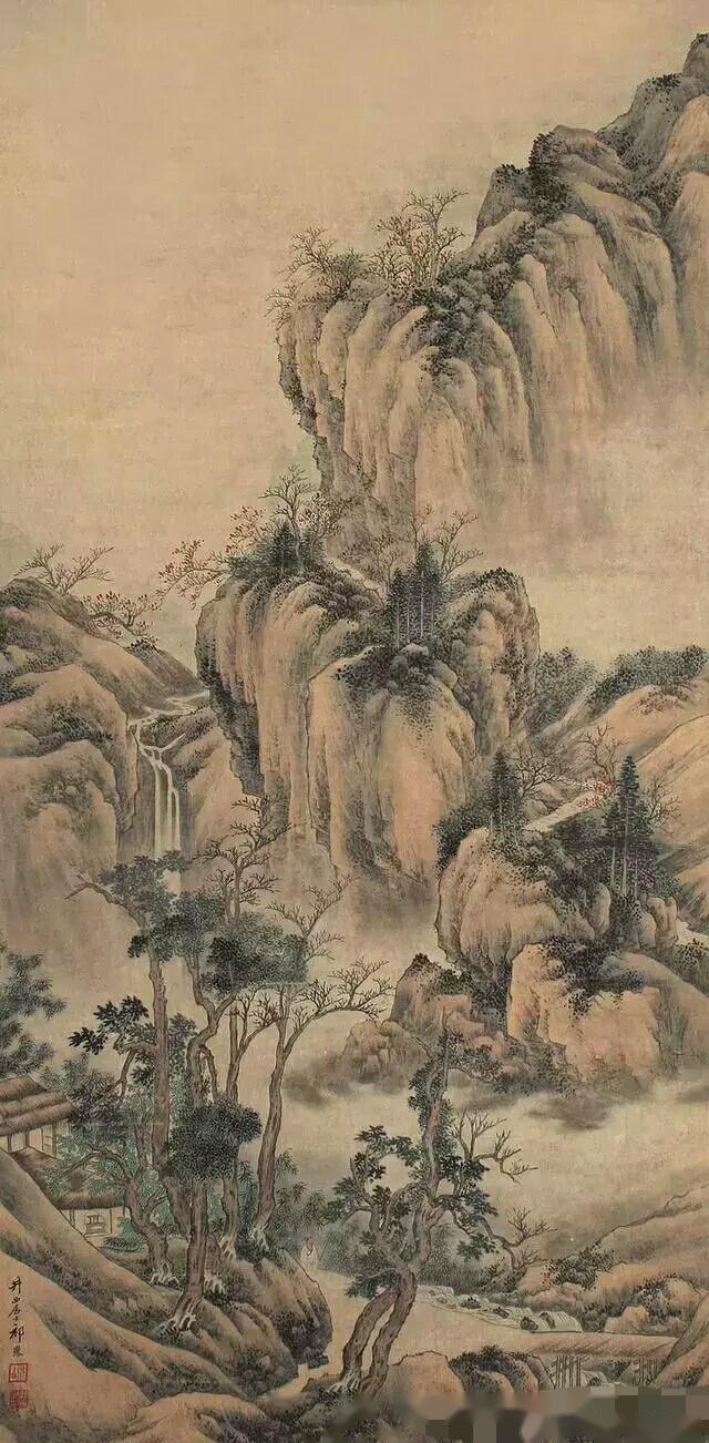不管怎么看起来他画的山水都很像明白人画的,特别和王翚有一像,绘画创作作风精细清润,构图几乎都是从所谓的正统派来。他也有不足之处,就是用笔略嫌拘谨板实,工稳有余,缺乏创造性。