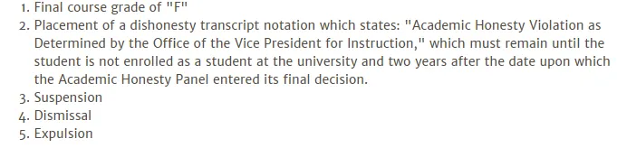 如果发现学生违反学术诚信的要求,学校将会根据事情的严重程度和学生的过往学术诚信记录给予相应的处罚。可能收到的处罚有: