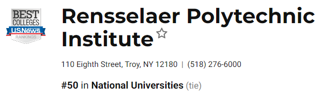 在2020年USNews美国大学排名中,伦斯勒理工大学排名第50。