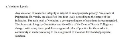 任何违反学术诚信的行为都将受到适当的处罚,佩珀代因大学根据违规的性质分为四个等级违规处罚。
