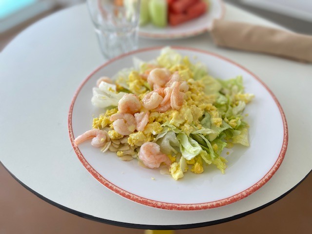 头一天自助餐又龙虾和蟹腿。煮的冷盘,相当一般。管够!
