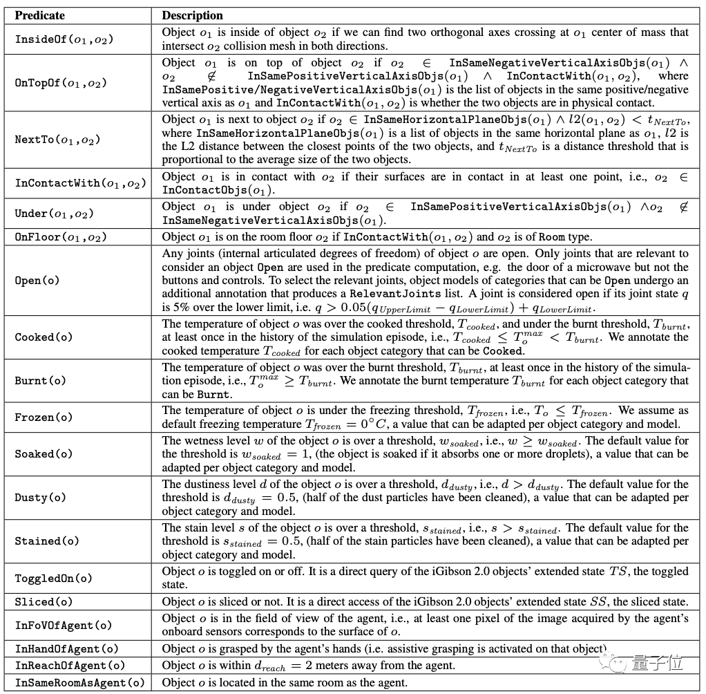 因此,iGibson 2.0以常见的自然语言为基础,定义了一组逻辑谓词(Logical Predicates):