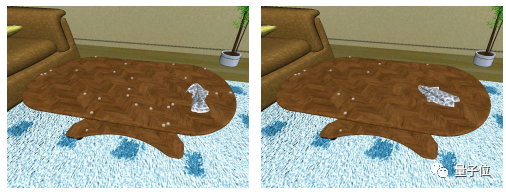 因此,在做完菜后,机器人可以选择用布擦拭灰尘颗粒: