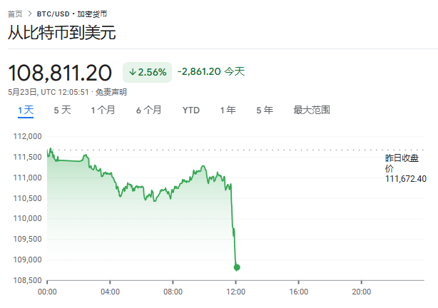 加密货币走低,以太坊日内跌幅一度达5%,现报2553美元/枚。比特币日内下跌逾2%,至108760美元/枚。