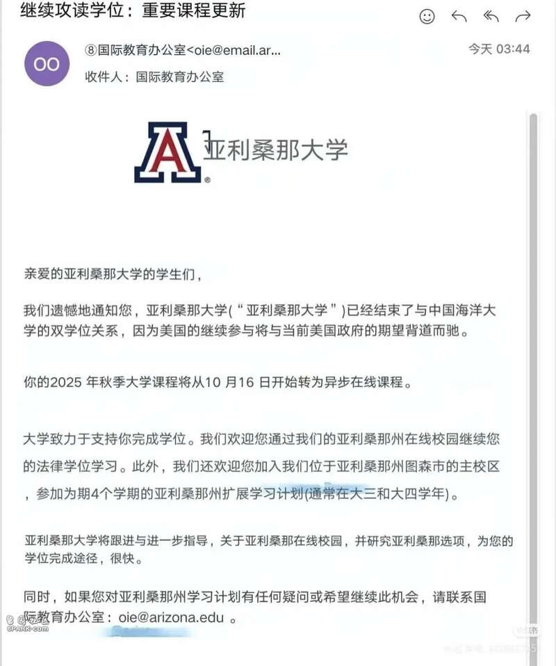 2025年9月下旬,多所中国高校与美国亚利桑那大学(University of Arizona,简称UA)合作的中外办学项目突然传出“关停”消息。部分学生开学才几天,就被通知“课程停止”“需转专业”。一时间,家长焦虑、学生迷茫,舆论哗然。