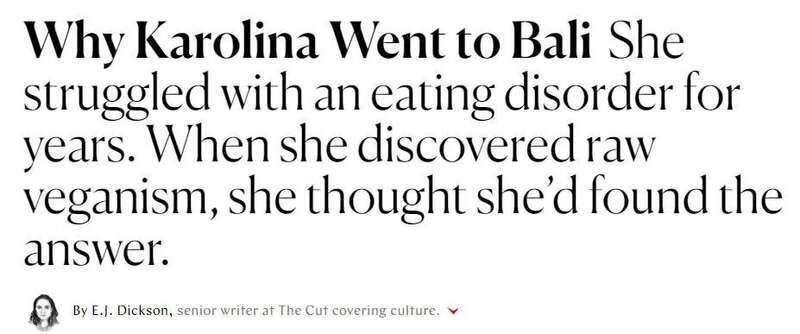 比如卡罗琳娜的一位网友,也是一位前果食主义,她告诉记者,在巴厘岛生活期间,她坚持生果饮食,结果导致骨质疏松、蛋白质缺乏和脚部浮肿。