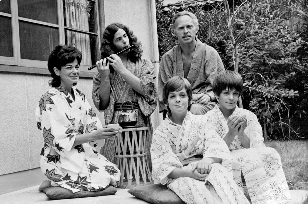 孔杰荣夫妇与三个儿子在日本京都,从左至右分别为彼得、伊森和塞斯,摄于1972年。 JOAN LEBOLD COHEN ARCHIVE