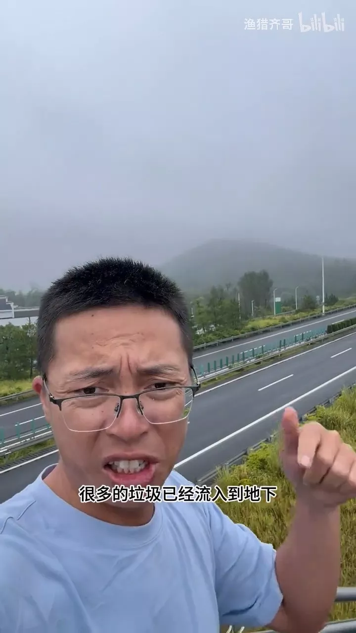 “渔猎齐哥”在视频中提到,除了垃圾堆积,天坑周边还有几条排污管道,源源不断向天坑内排放污水: