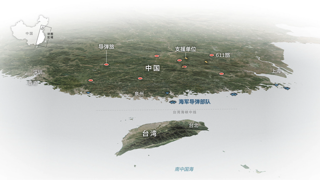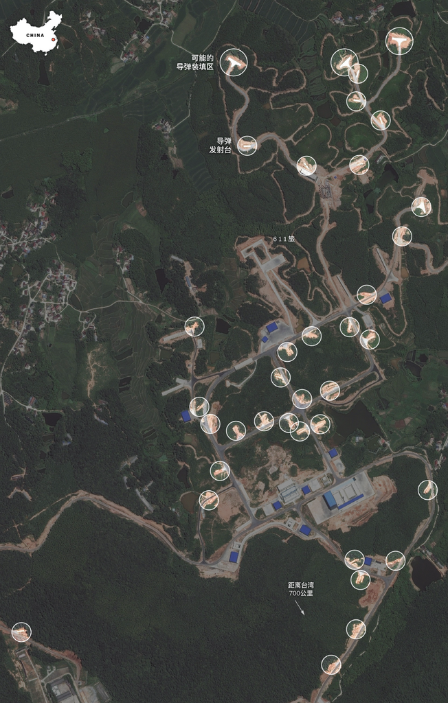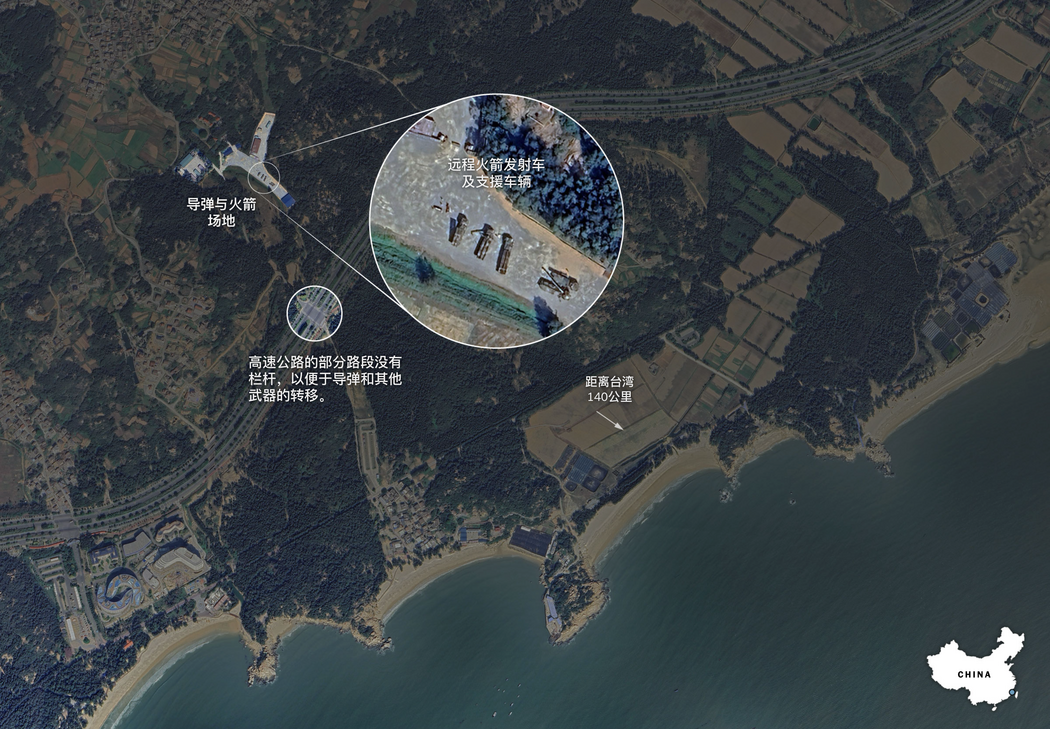 这些发射场中有一个位于中国大陆离台湾最近的地方。2022年,时任美国众议院议长的南希·佩洛西访问台湾后,作为报复,中国进行了军事演习,追踪中国人民解放军部队动向的台湾独立研究员温约瑟说,当时从那个发射场试射了能够打击台湾的火箭。温约瑟研究了中国中央电视台报道那些演习的录像,以确定演习使用了什么发射场。