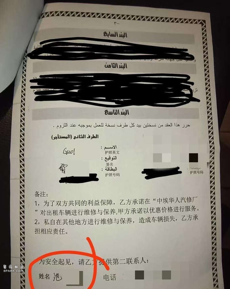 9月29日凌晨,陶先生发帖称,希望池某家人与他取得联系。他表示,8月26日,男子郭某向他租了一辆新汽车。在签订的租车合同中,郭某填写的第二联系人为池某。9月21日,这辆车从开罗前往本哈后,定位便停止更新。陶先生说,“我本来以为他们去度假了,直到9月24日发信息没人回复,两人电话也打不通,查看定位后怀疑车辆在警局停靠。”25日晚,陶先生驱车前往定位地点,发现车辆确在警局院内,因时间较晚,警方让他第二天再来。次日,警方核实了陶先生的真实身份,证明该车辆与案件无关。27日,陶先生带着律师再次来到警局,被告知仍然不能取回车辆,也不清楚具体案情。希望郭某和池某的家属能与他联系,并希望案件早点了结。