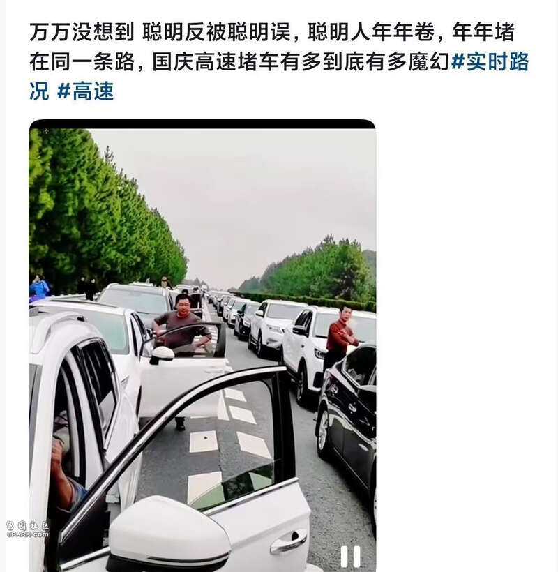“大聪明”国庆错峰出行 被更多“大聪明”堵路上