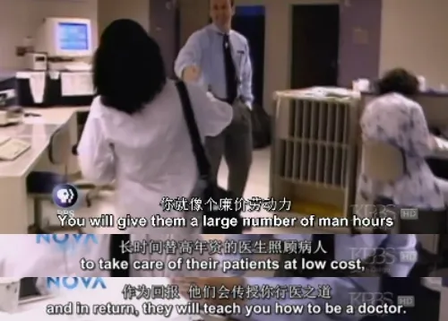 纪录片里,有一位住院医生跟进一位心脏有问题的病人,准备手术事宜。手术前,病人状况稳定,他们聊天相当愉快,病人还告诉她,等自己痊愈出院时,他要穿苏格兰裙子给她看。结果经历近7小时的手术后,病人去世了。实习医生猝不及防,崩溃大哭。